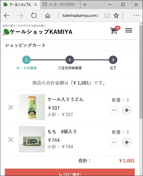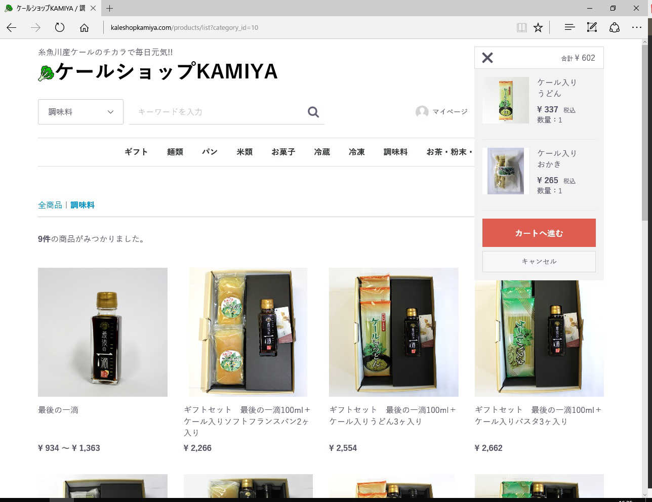 なお、お買い物中でもショッピングカートに入っている商品を確認することができます。上のショッピングカートのアイコンをすると確認できます。