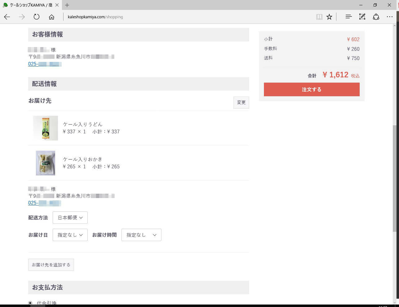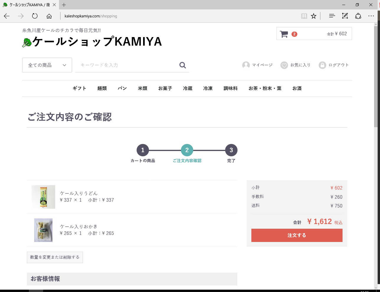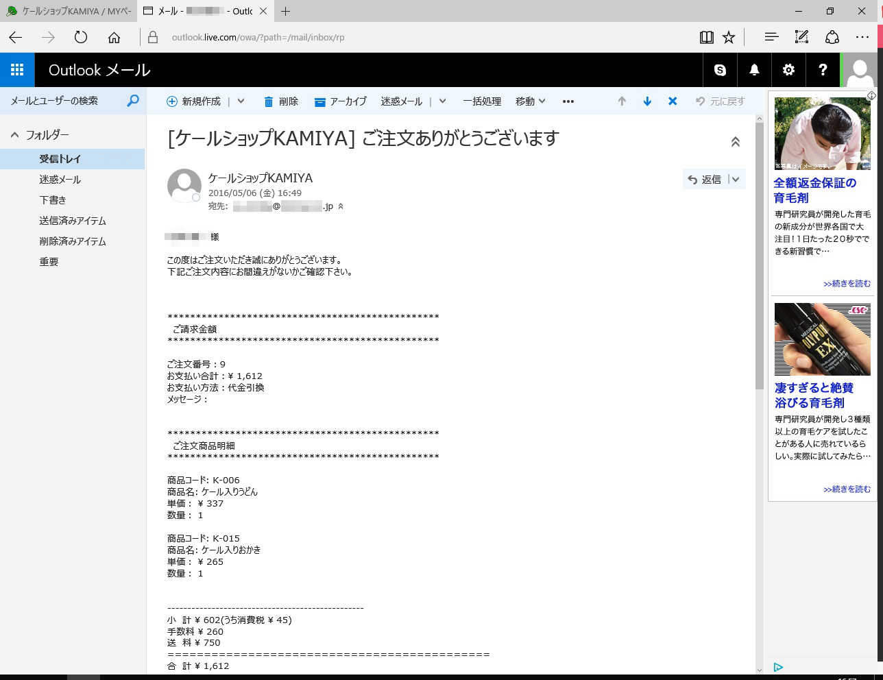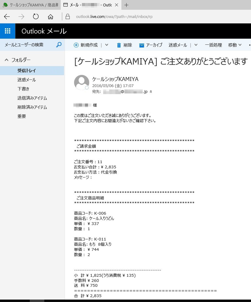 ご登録いただいたメールアドレスにご注文内容の確認メールが届きますので、ご確認ください。
